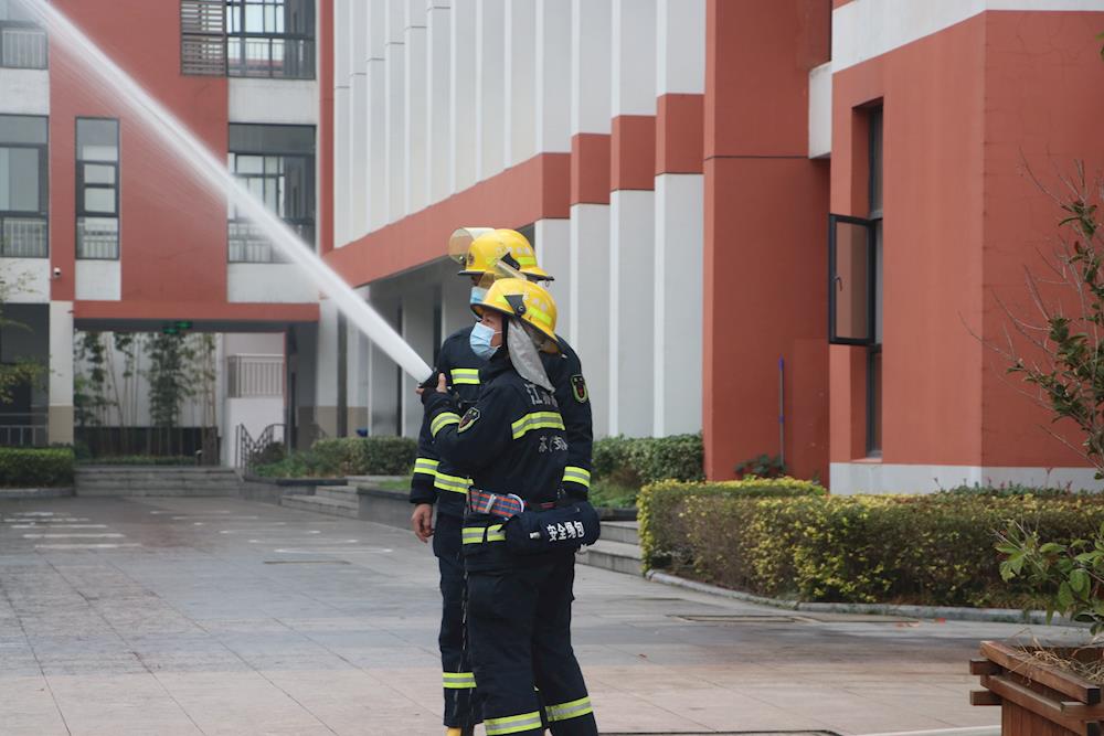 演练之后,消防员向大家演练了高压水枪灭火以及如何正确使用灭火器。之后,郭惠东校长进行了演练总结,列举了生动的事例增强大家的消防意识。