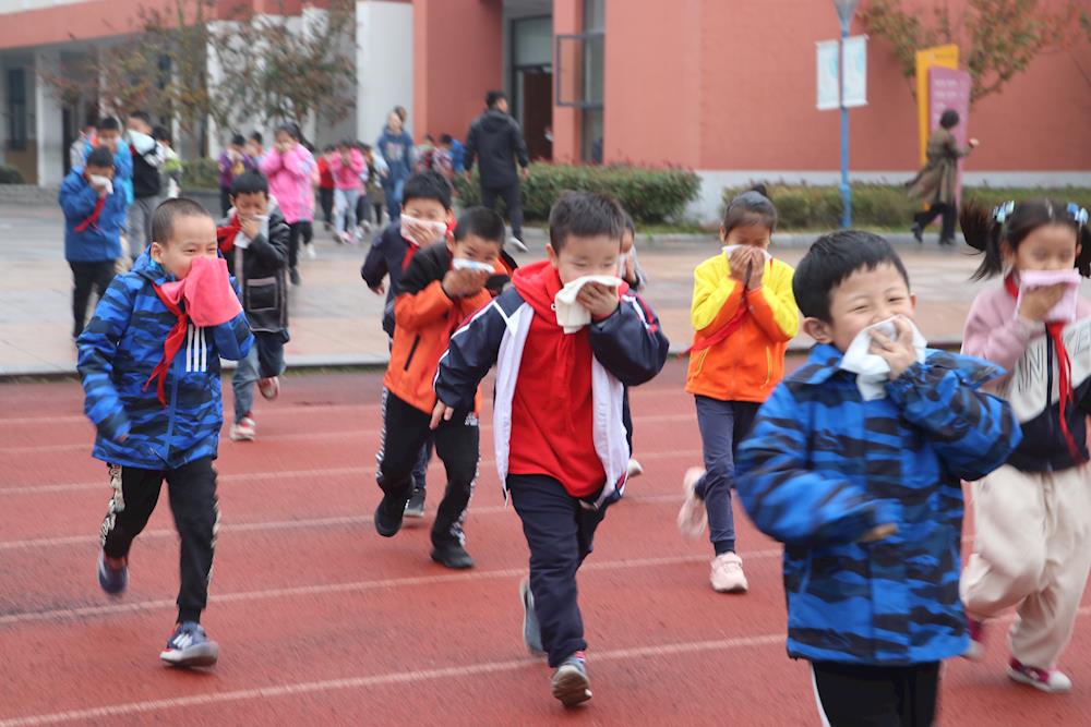20日上午8点15分,随着警报的响起,班主任老师迅速组织学生疏散逃生。各班按照指定路线,弯着腰,用手、袖口、湿巾等捂着嘴鼻迅速有序地进行紧急疏散。全体师生在第一时间撤离到校园的安全地带。