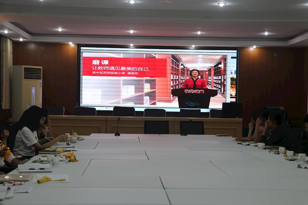 上半场,郭校长与青年教师一起,总结过去,展望未来,用“像叶圣陶那样做老师”为题,发自肺腑的致辞拉开了此次培训的序幕,并将管建刚老师的《不做教书匠》一书赠予新教师,希望老师们与阅读同行,不断提升自己。接着两年内的青年教师就开学一个月以来的教学工作进行阶段性的反思与汇报。汇报结束后,姚校长对青年教师的反思进行了深刻而不失活泼的点评。